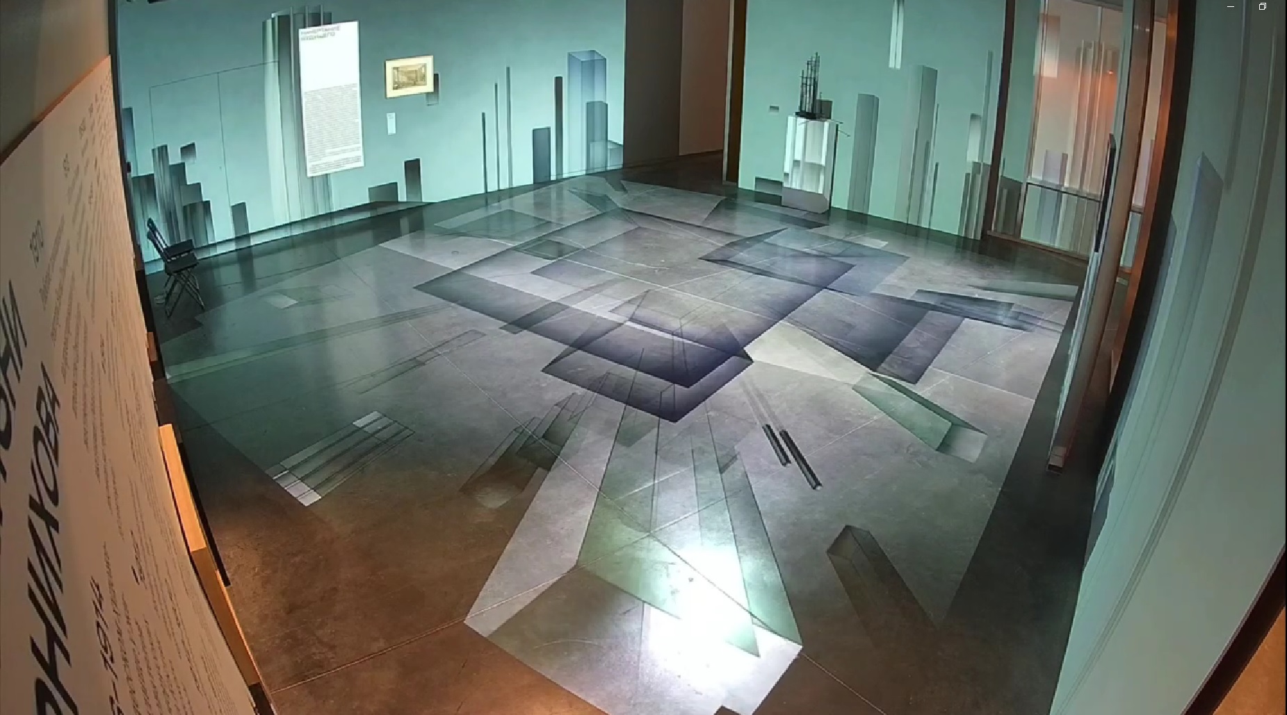 Система с Dataton WATCHOUT и медиасервером WATCHPAX позволила в короткие сроки выполнить необходимую настройку. Кроме коррекции геометрии нужно было выполнить сшивку изображения (проекция на пол), маской установить границы проекции. Маски понадобились и для выделения подсветкой оказавшихся “внутри проекции” экспонатов в рамках и информационного плаката.